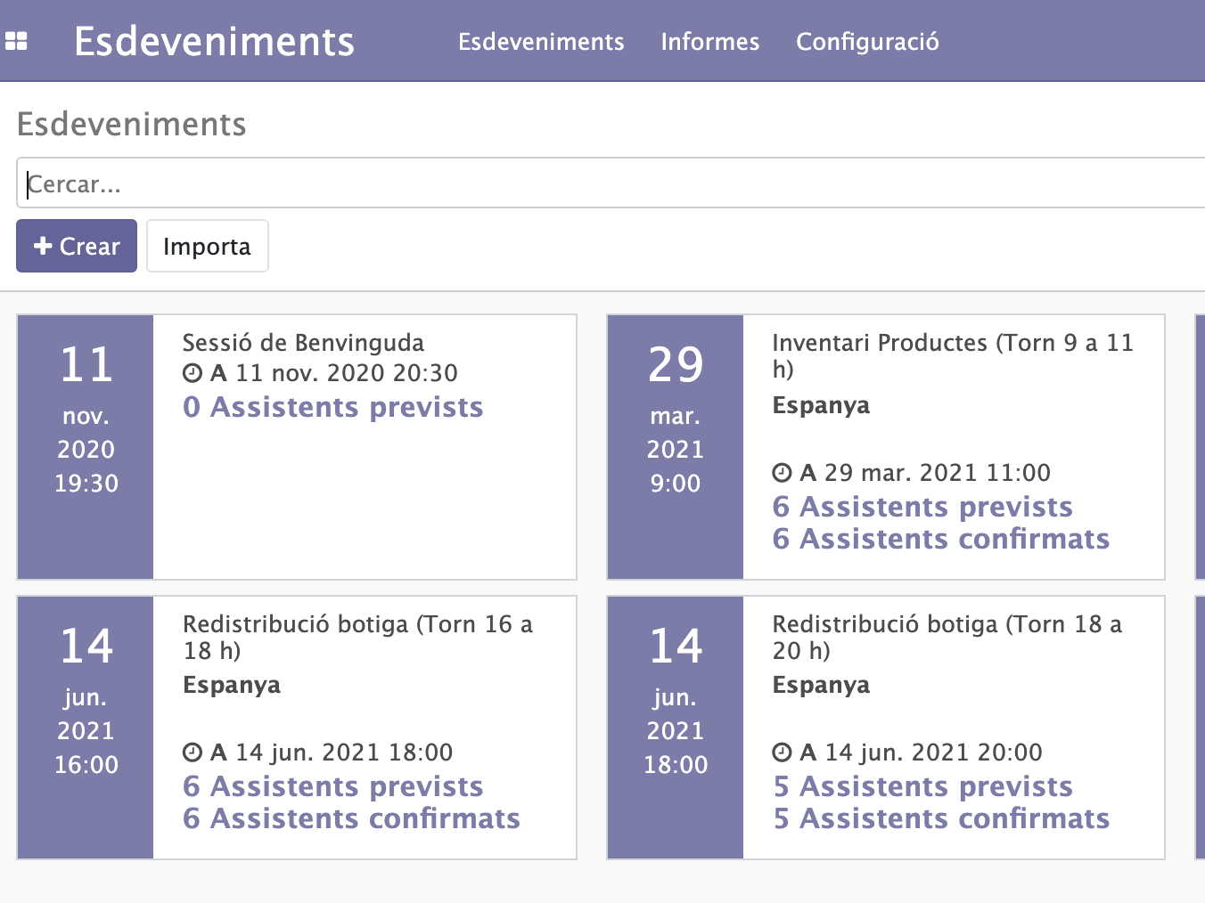 Com crear un esdeveniment a Odoo?