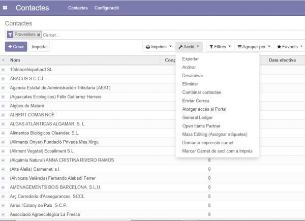 A continuació trobareu algunes indicacions genèriques del funcionament Odoo, vàlides per a tots els mòduls.